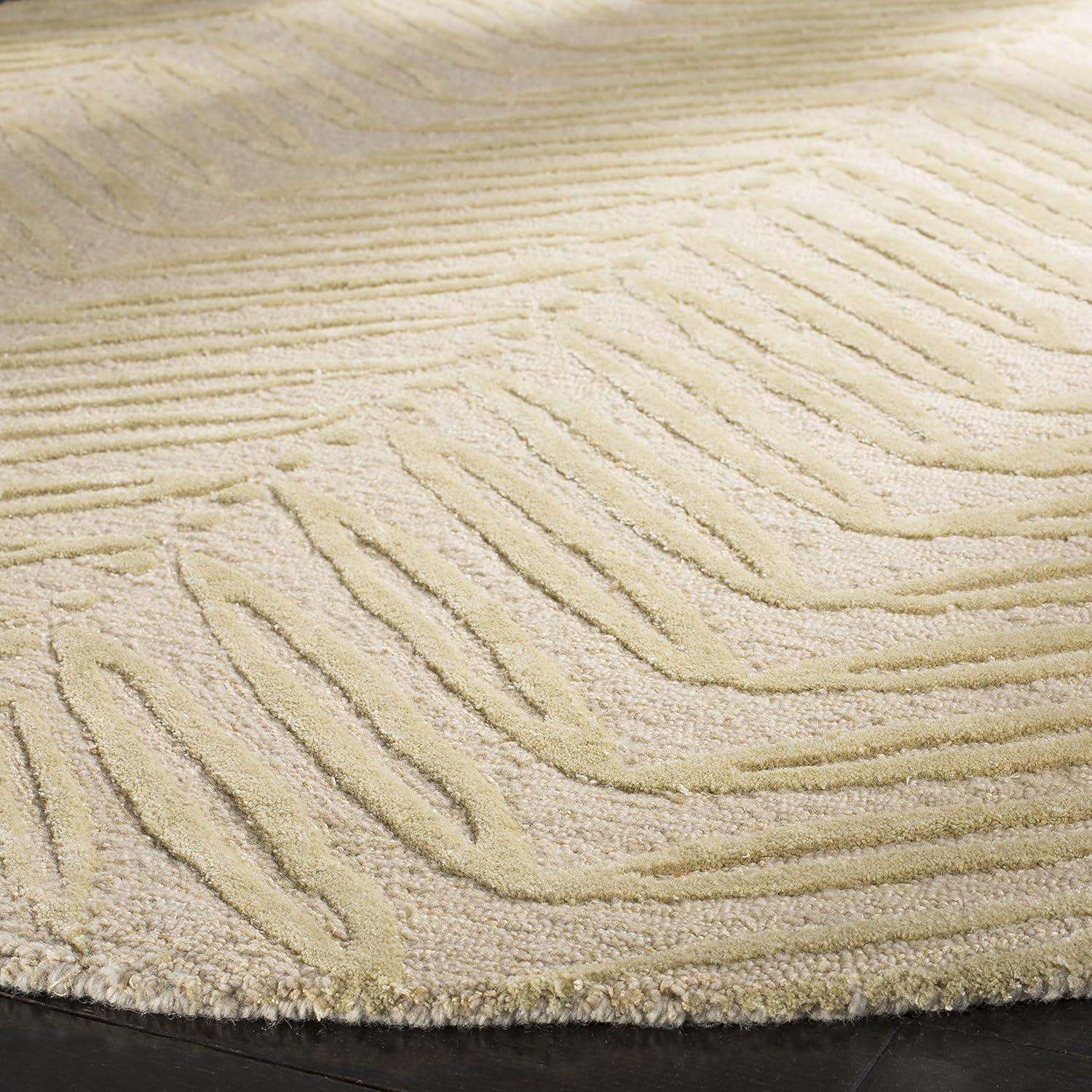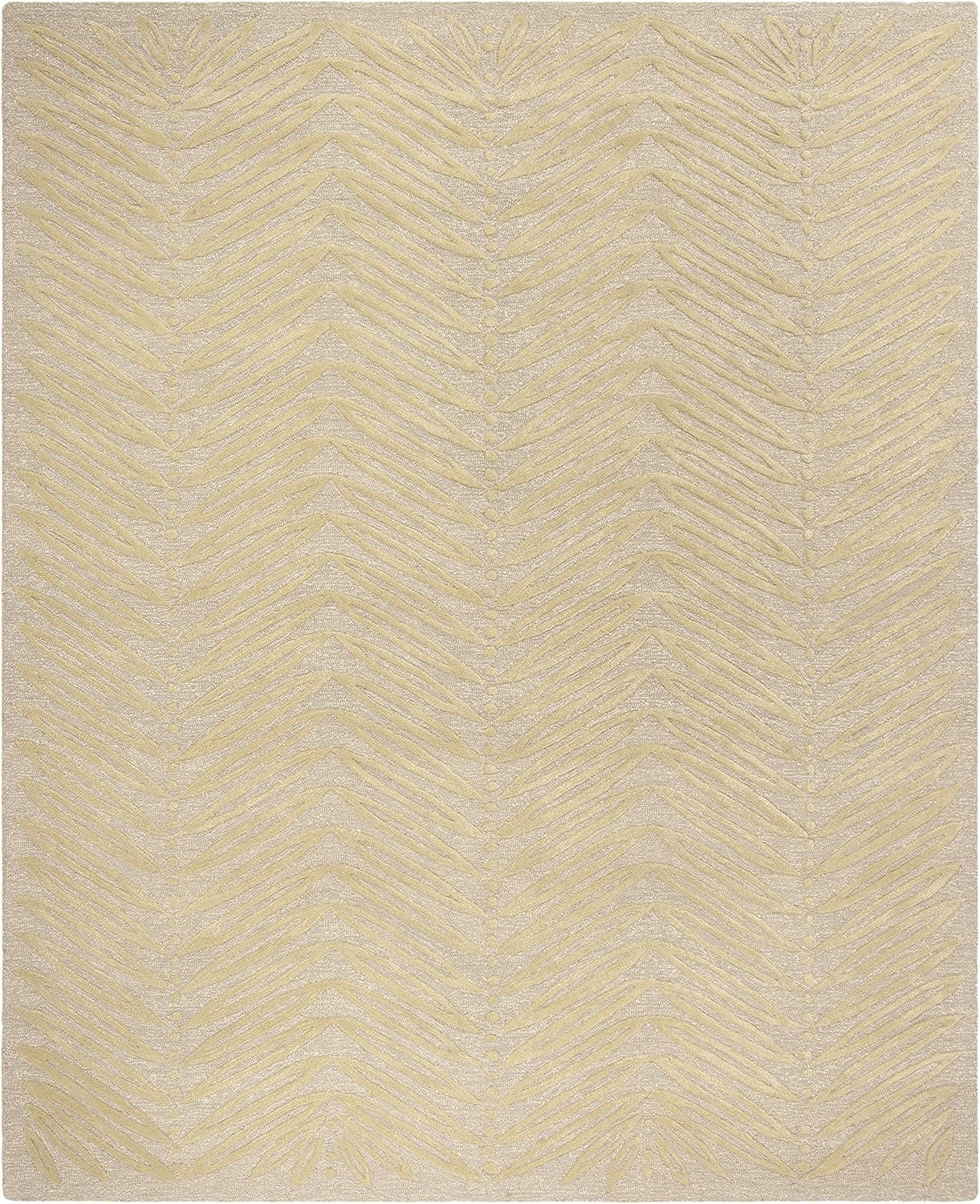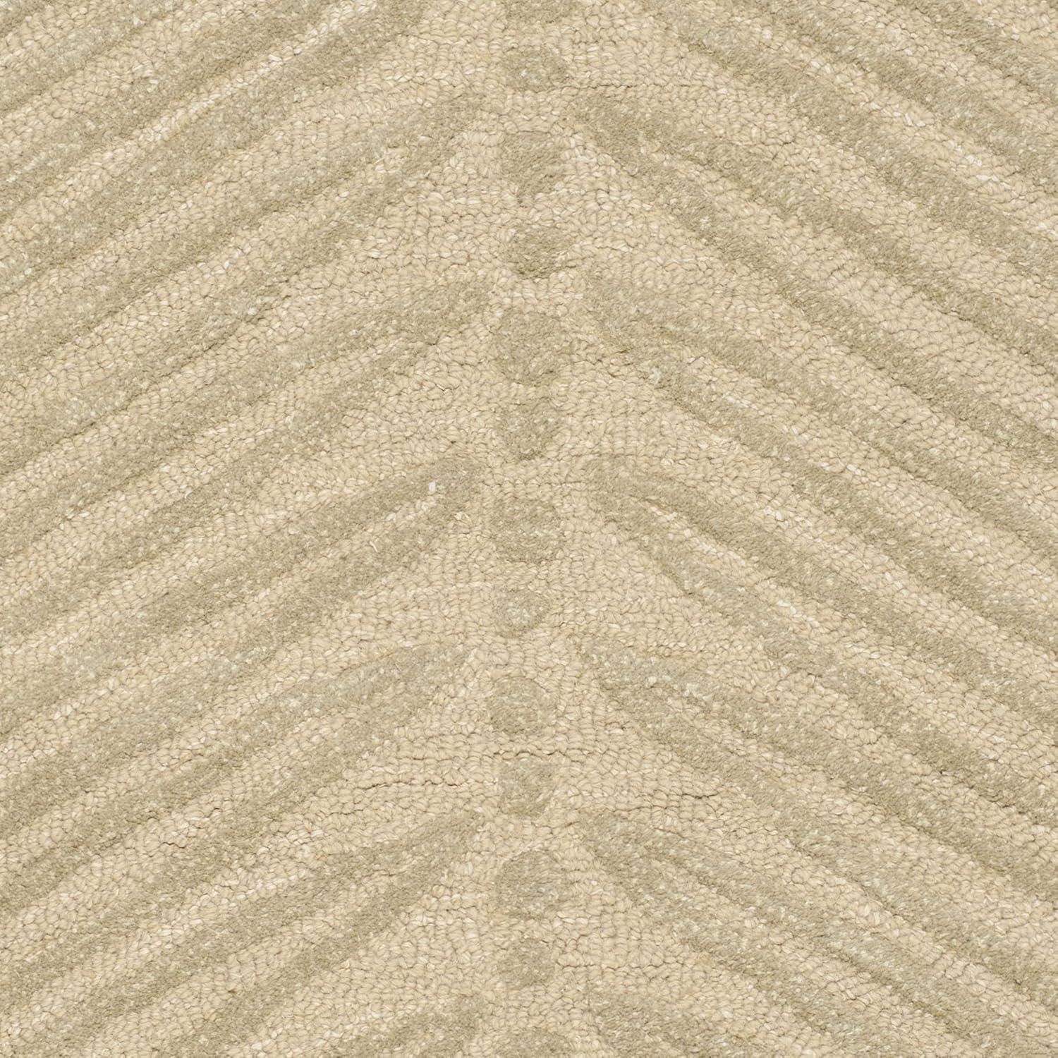 Inspired by a vintage printed paper, the foliage of Chevron Leaves has been dramatically increased in scale to create an unexpected yet decidedly elegant stripe. Cut-pile viscose yarns add depth and dimension to the loop pile New Zealand wool ground. Rendered in a palette of pale fashion colors, this transitional design is hand-tufted by skilled artisans in India.