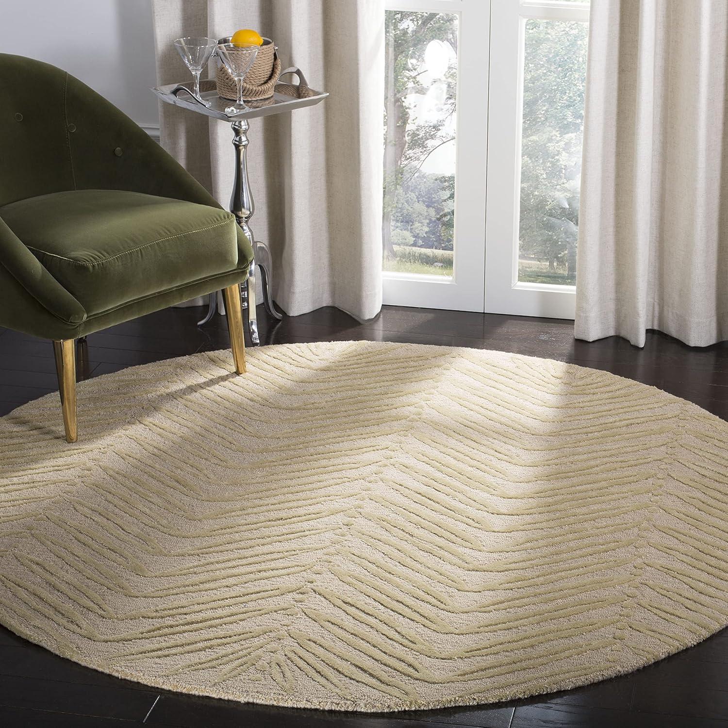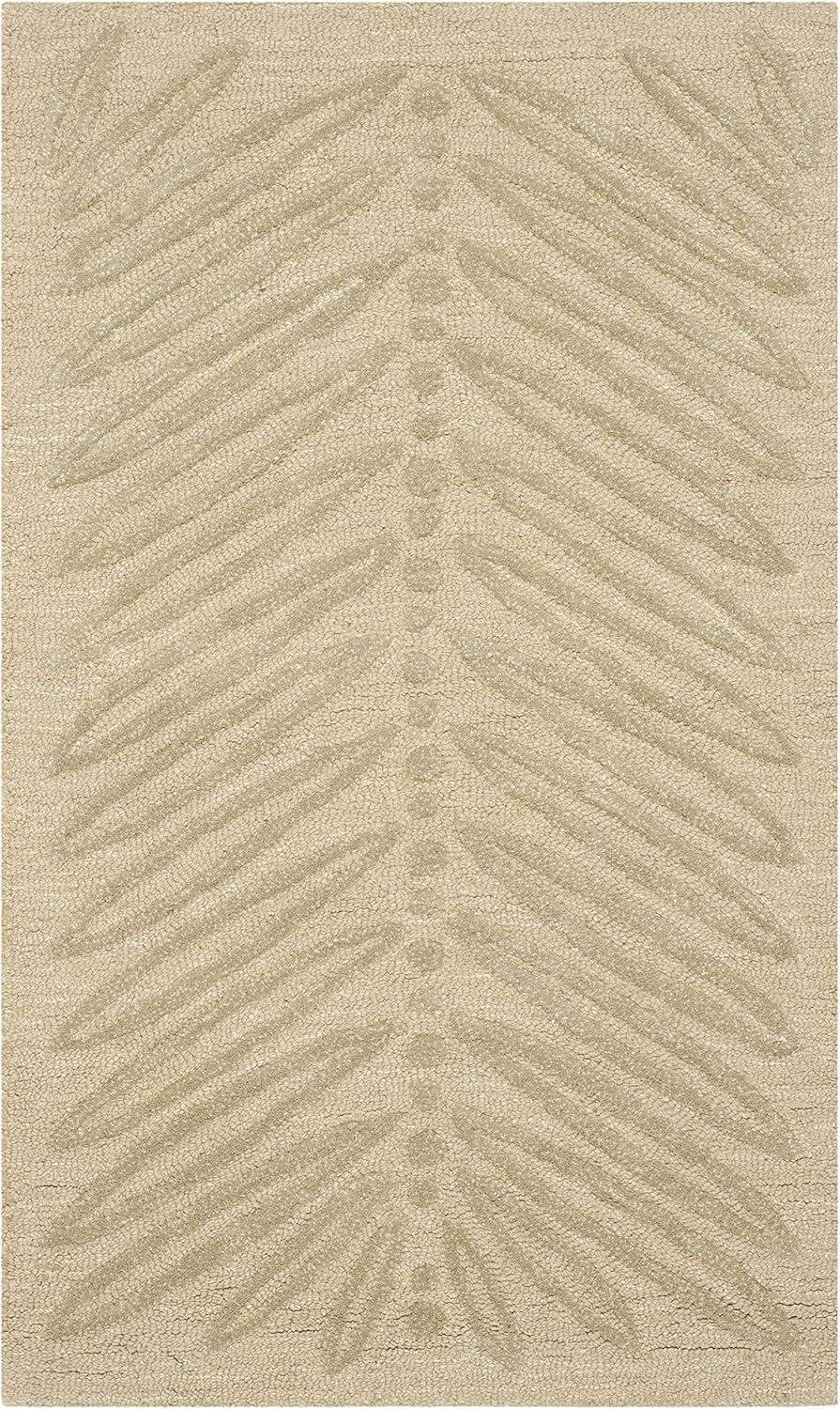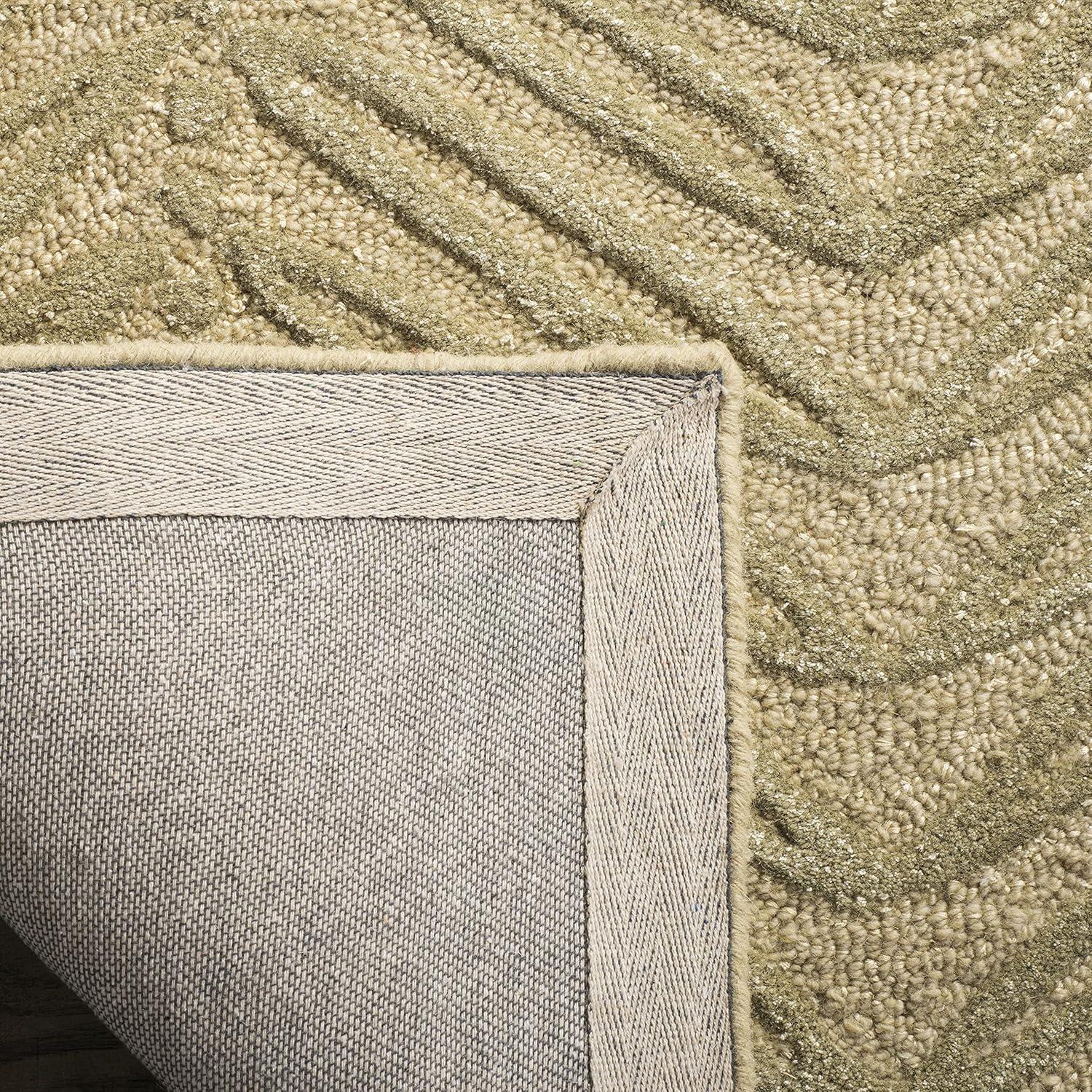 Inspired by a vintage printed paper, the foliage of Chevron Leaves has been dramatically increased in scale to create an unexpected yet decidedly elegant stripe. Cut-pile viscose yarns add depth and dimension to the loop pile New Zealand wool ground. Rendered in a palette of pale fashion colors, this transitional design is hand-tufted by skilled artisans in India.