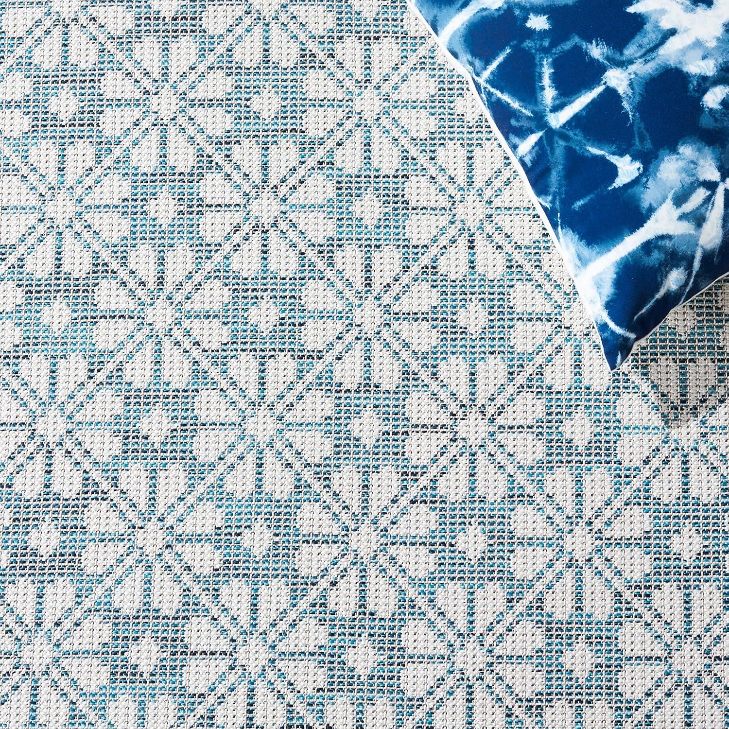Martha Stewart x SAFAVIEH Outdoor Area Rug Collection - 8' x 10', Blue & Beige, Weather Resistant & Washable, Ideal for Patio, Backyard, Mudroom, Deck, Dining Space (MSR4491M)(Blue/Beige)