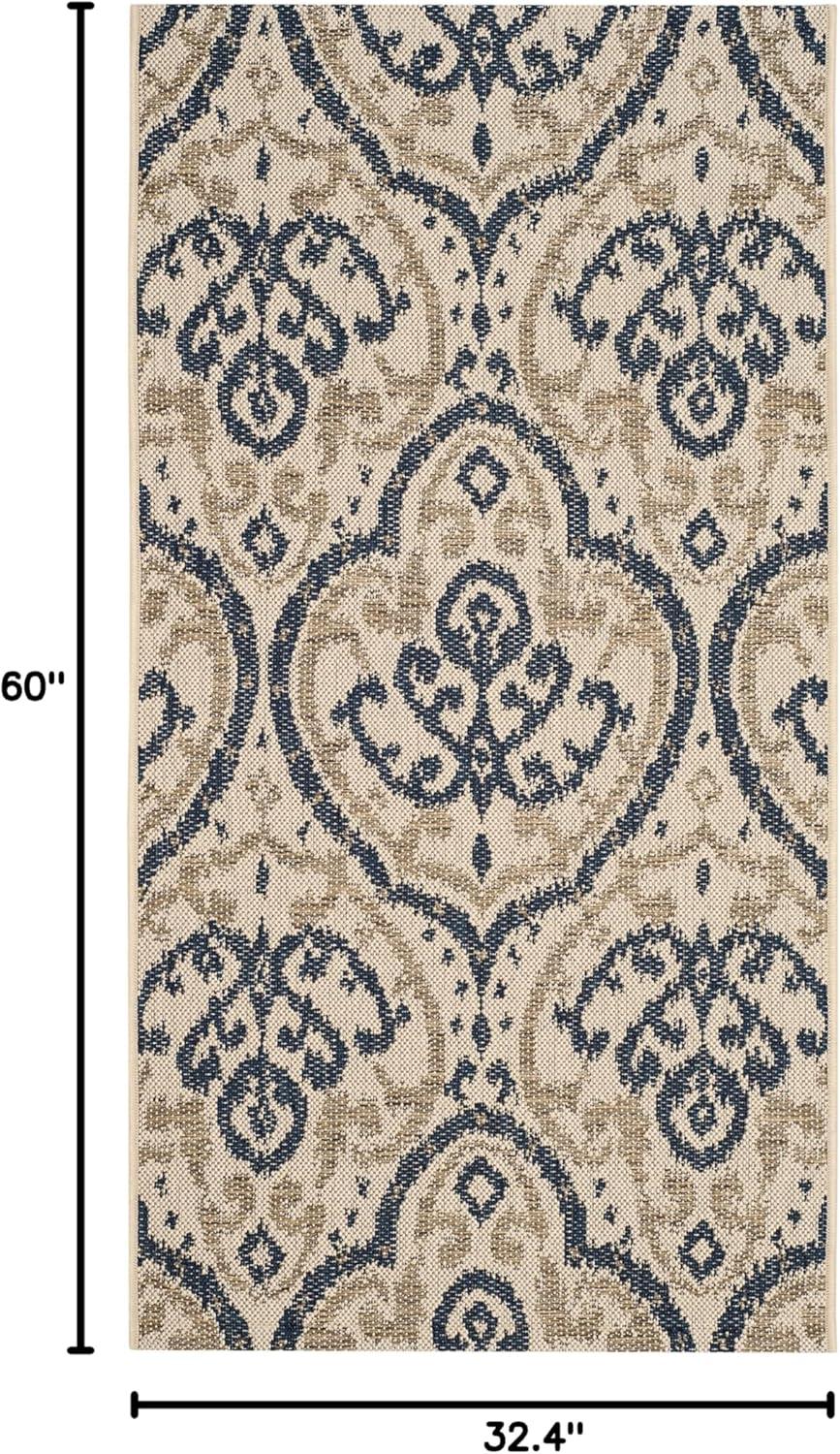 Martha Stewart x SAFAVIEH Outdoor Area Rug Collection - 8' x 11'2", Beige & Anthracite, Weather Resistant & Washable, Ideal for Patio, Backyard, Mudroom, Deck, Dining Space (MSR4114-23612)(Beige/Navy)