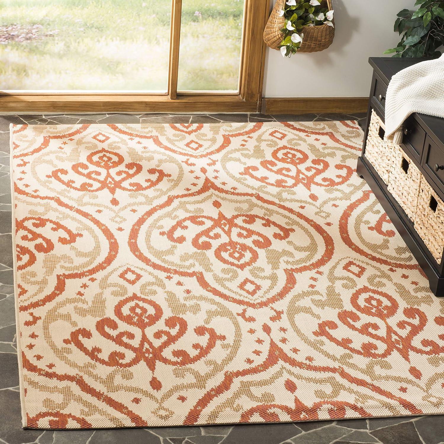 Martha Stewart x SAFAVIEH Outdoor Area Rug Collection – 8′ x 11’2″, Beige & Anthracite, Weather Resistant & Washable, Ideal for Patio, Backyard, Mudroom, Deck, Dining Space (MSR4114-23612)(Beige/Terracotta)