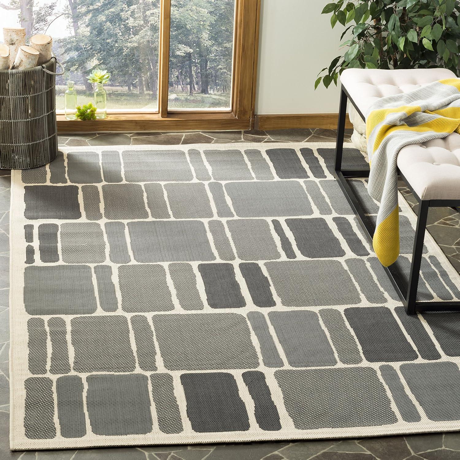 Martha Stewart x SAFAVIEH Outdoor Area Rug Collection – 8′ x 11’2″, Cream & Sweet Pea, Weather Resistant & Washable, Ideal for Patio, Backyard, Mudroom, Deck, Dining Space (MSR4289-325)(Beige/Anthracite)